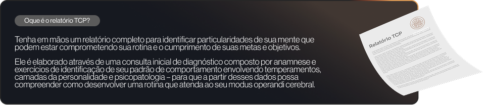 Vamos realizar uma consulta de análise de seu corpo, mente e espírito para identificar bloqueios, dificuldades, tipo de temperamento, diagnóstico psicológico, padrão mental e características de personalidade que podem estar comprometendo sua evolução, recebendo um relatório completo de seu perfil – o TCP.
